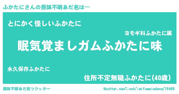 | ポケモン風あだ名 | 『フックウザ』『ヒフカタニ』 |