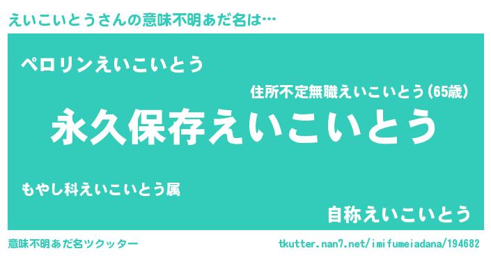 | 胡散臭い通販商品みたいなあだ名 | 『来世でも幸せになれる健康食品…その名も「えいこいとう」』 |