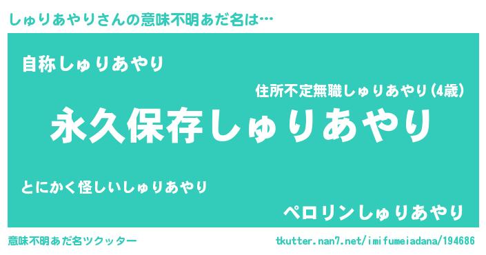 | ヘコむあだ名 | 『しゅりあやり(小並感)』『しゅっふぃ~』 |