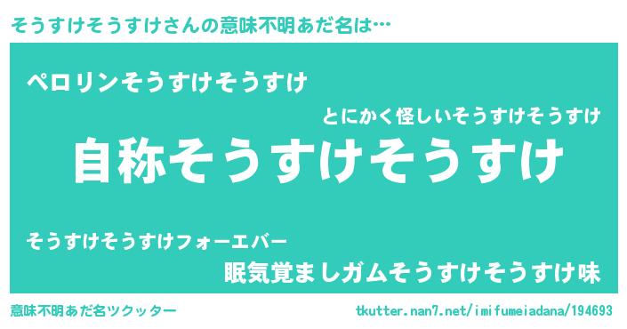 | 欧米人風あだ名 | 『ケンブリッジそうすけそうすけ』 |