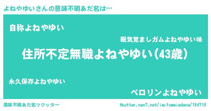 | 女子向けラノベタイトル風あだ名 | 『乙女ゲームの破滅フラグしかない悪役よねやゆいに転生してしまった…』 |