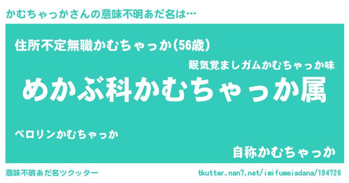 | ヘコむあだ名 | 『かむにー』『かむちゃっか(爆)』 |