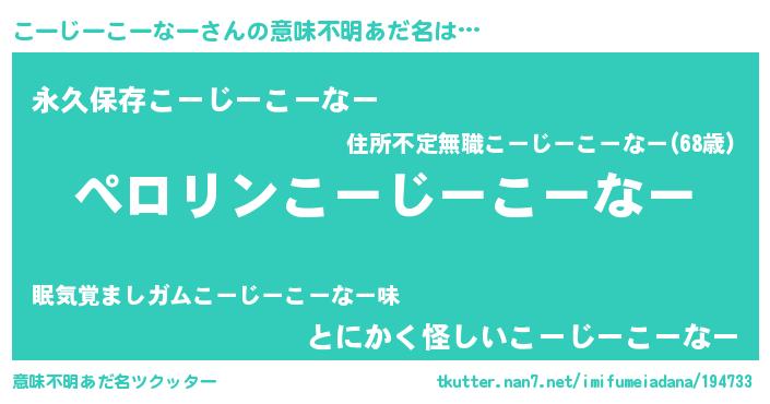 | 男性向けラノベタイトル風あだ名 | 『こーじーこーなーの憂鬱』 |