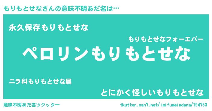 | ヘコむあだ名 | 『もりふぇ~』『もりもとせな(笑)』 |