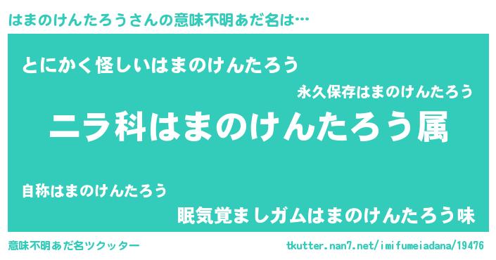 | 欧米人風あだ名 | 『アンジェラ・はまのけんたろう』 |