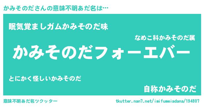 | ファンタジー風あだ名 | 『エターナルカミソノダー』『ゼカミトゥ』 |