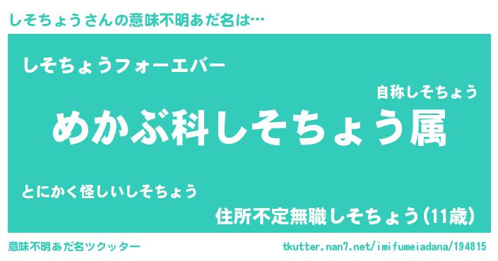 | 男性向けラノベタイトル風あだ名 | 『シソチョウスレイヤー』 |
