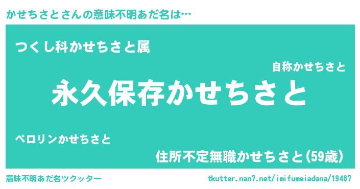 | 胡散臭い通販商品みたいなあだ名 | 『前代未聞の健康食品…その名も「かせちさと」』 |