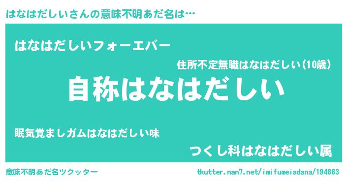 | 男性向けラノベタイトル風あだ名 | 『Re:はなはだしいから始める異世界生活』 |