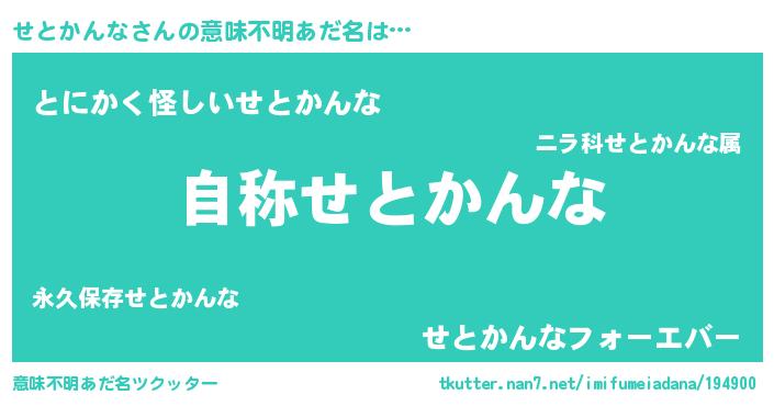 | 男性向けラノベタイトル風あだ名 | 『うちのせとかんなが世界を掌握している!』 |