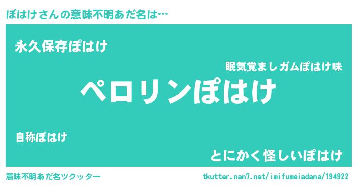 | 男性向けラノベタイトル風あだ名 | 『はたらくぽはけさま!』『ぽはけの憂鬱』 |