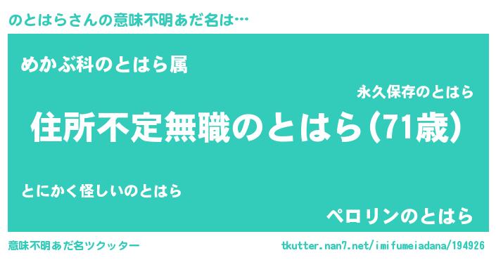 | 男性向けラノベタイトル風あだ名 | 『魔弾の王とのとはら』『のとはらの憂鬱』 |