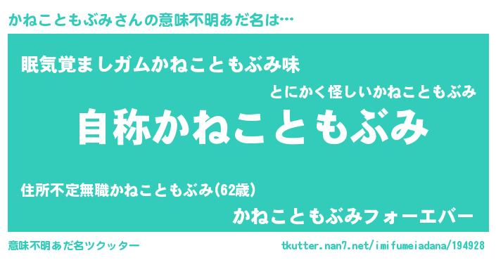 | 男性向けラノベタイトル風あだ名 | 『Re:かねこともぶみから始める異世界生活』 |
