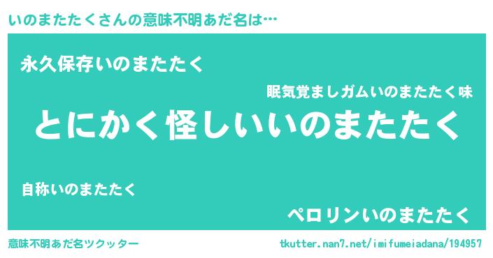 | 女子向けラノベタイトル風あだ名 | 『いのまたたくの卵を拾いまして』 |