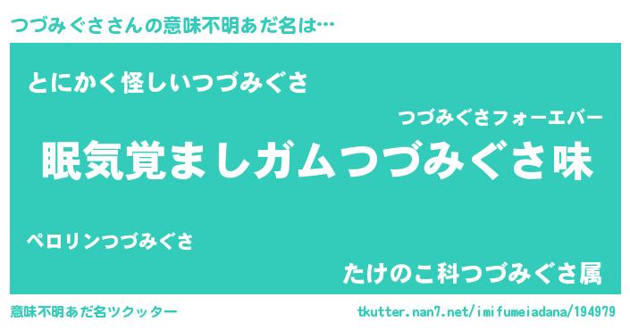 | ポケモン風あだ名 | 『ツックウザ』『ヒツヅミグサ』 |