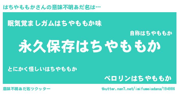 | ヘコむあだ名 | 『はちやももか(笑)』『はちにー』 |