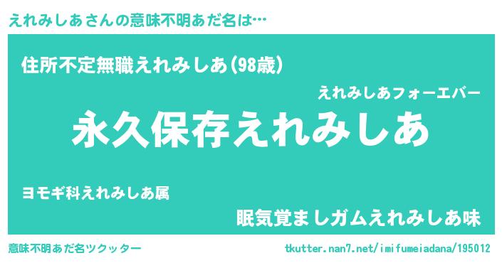 | ヘコむあだ名 | 『えれみしあ(笑)』『豆乳』 |