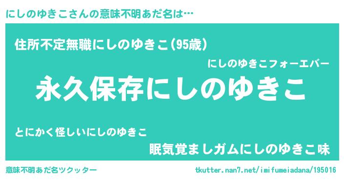 | 男性向けラノベタイトル風あだ名 | 『にしのゆきこという概念が存在しない退屈な世界 』 |