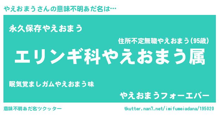 | 胡散臭い通販商品みたいなあだ名 | 『絶対に幸福をもたらす招き猫…その名も「やえおまう」』 |