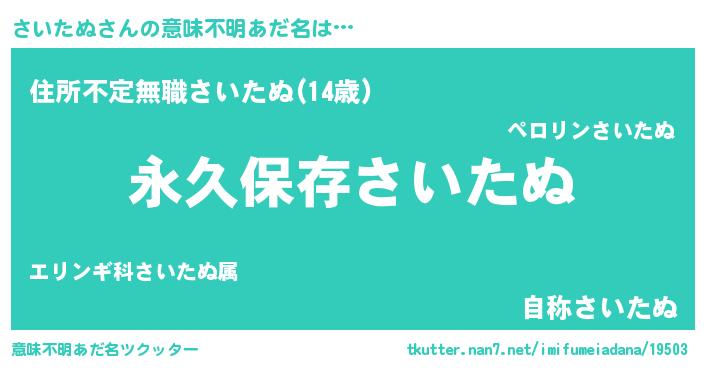 | 伝説のあだ名 | 『古文書に記された吟遊詩人さいたぬ』 |