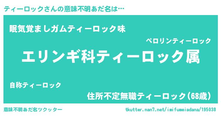 | 男性向けラノベタイトル風あだ名 | 『ティーロックスレイヤー』 |