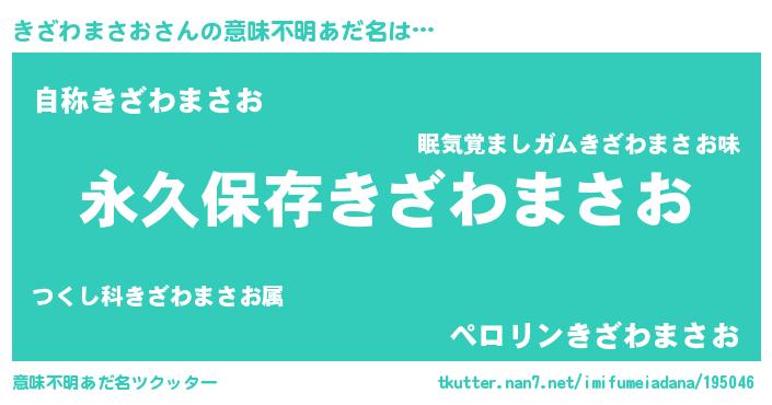 | 女子向けラノベタイトル風あだ名 | 『異世界で失敗しない100のきざわまさお』 |