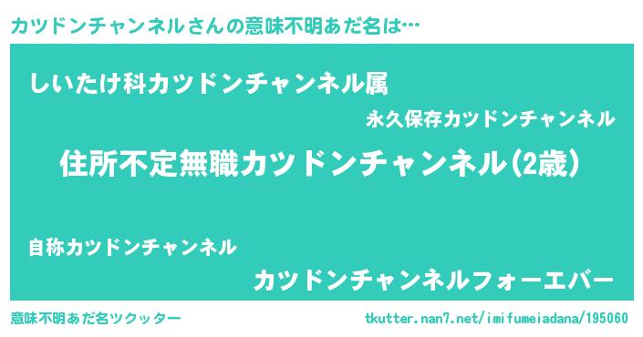 | 伝説のあだ名 | 『秘められし格闘家カツドンチャンネル』 |