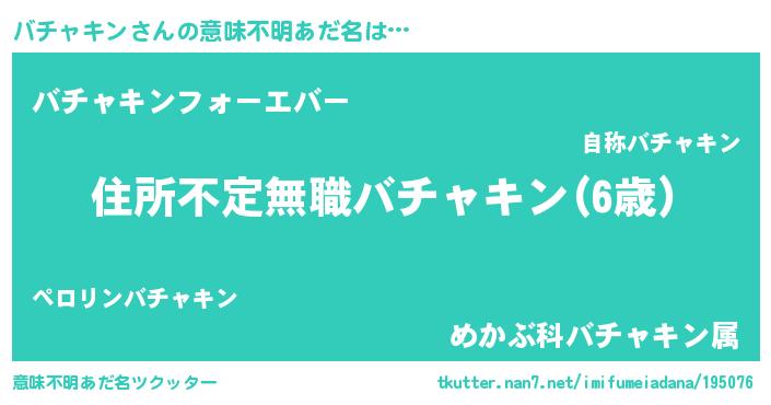 | 胡散臭い通販商品みたいなあだ名 | 『あなたにだけ特別に提供する100年もののヴィンテージワイン…その名も「バチャキン」』 |