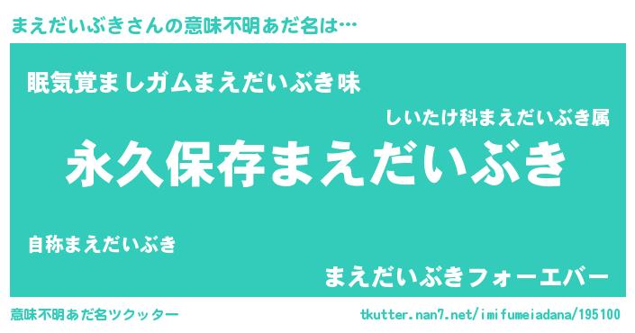 | 男性向けラノベタイトル風あだ名 | 『まえだいぶきという概念が存在しない退屈な世界 』 |