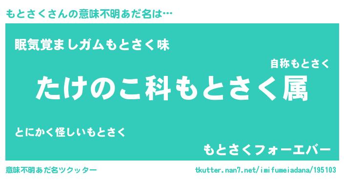 | 男性向けラノベタイトル風あだ名 | 『転生したらもとさくだった件』 |