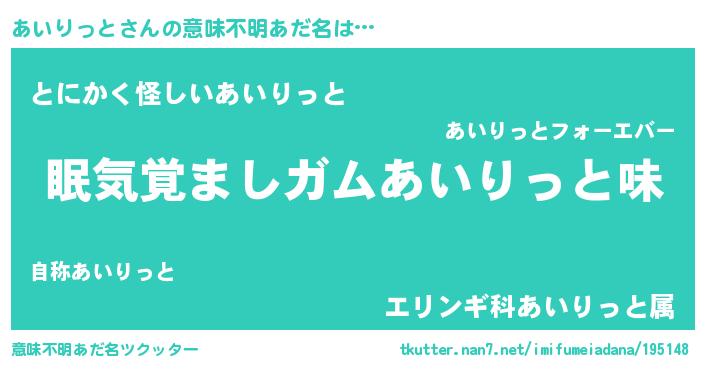 | 男性向けラノベタイトル風あだ名 | 『おまえをオタクにしてやるから、俺をあいりっとにしてくれ! 』 |