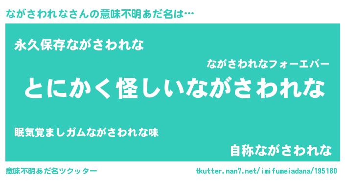 | 男性向けラノベタイトル風あだ名 | 『ながさわれなに滅ぼされるだけの簡単なお仕事です』 |