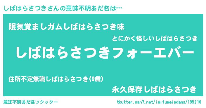 | 胡散臭い通販商品みたいなあだ名 | 『運命の人と巡り会える高級そうな壺…その名も「しばはらさつき」』 |