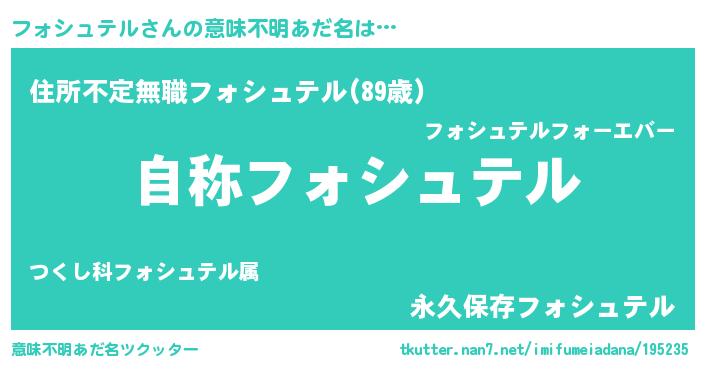 | ヘコむあだ名 | 『フォシュテル(笑)』『酢こんぶ』 |