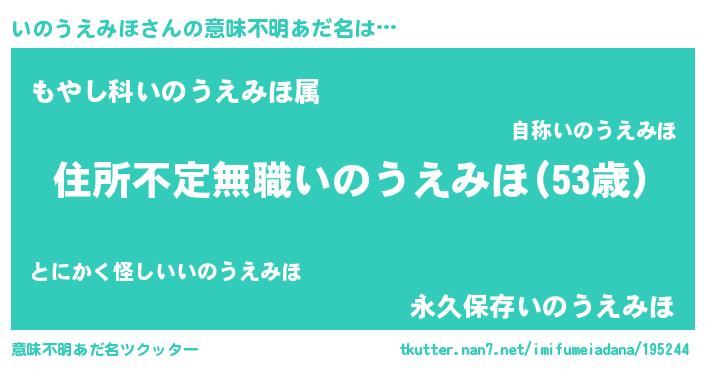 | 伝説のあだ名 | 『古より伝わる暗殺者いのうえみほ』 |