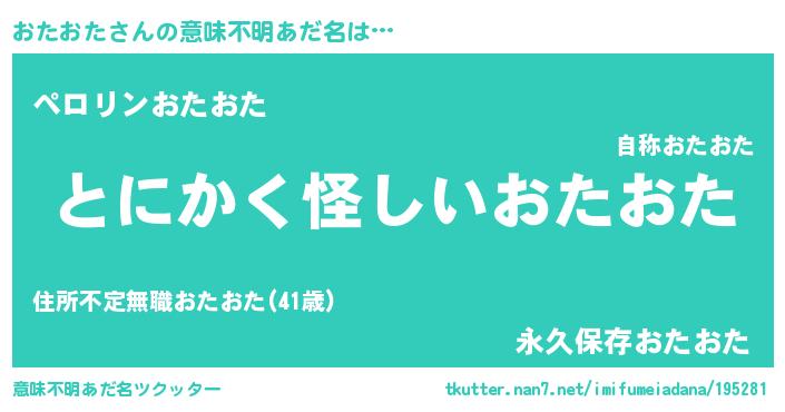 | 胡散臭い通販商品みたいなあだ名 | 『信頼と実績のサプリメント…その名も「おたおた」』 |