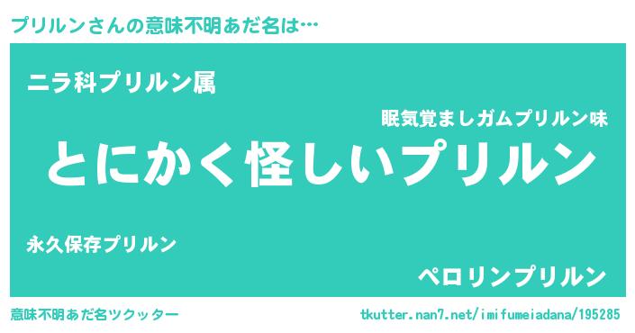 | 自動車の名前っぽいあだ名 | 『プルトリパン』『プールスリイス』 |