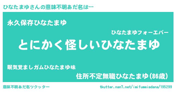 | ポケモン風あだ名 | 『ヒヒナタマユ』『ゼニヒナ』 |
