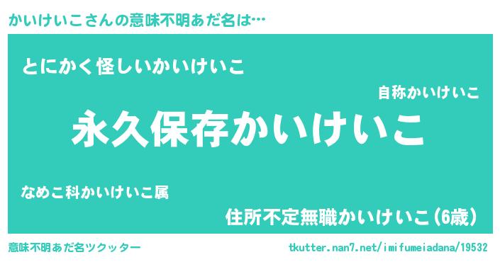 | ヘコむあだ名 | 『かいけいこ(苦笑)』『かい太郎』 |