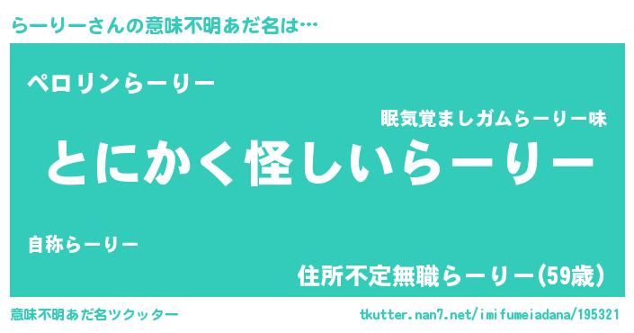 | 男性向けラノベタイトル風あだ名 | 『緋弾のラーリー』 |
