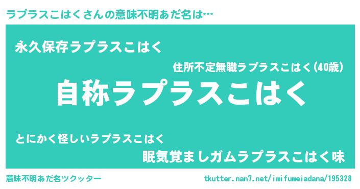 | 男性向けラノベタイトル風あだ名 | 『Re:ラプラスこはくから始める異世界生活』 |