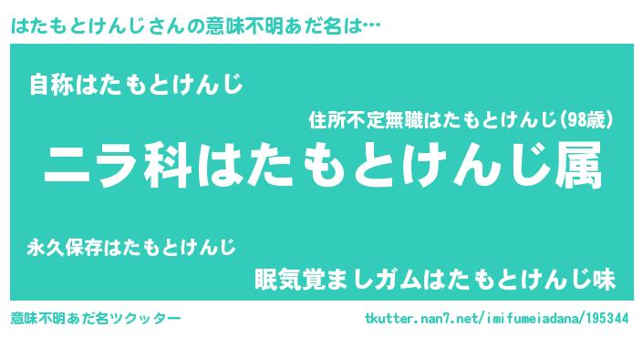 | ヘコむあだ名 | 『はたもとけんじ(震え声)』『酢こんぶ』 |