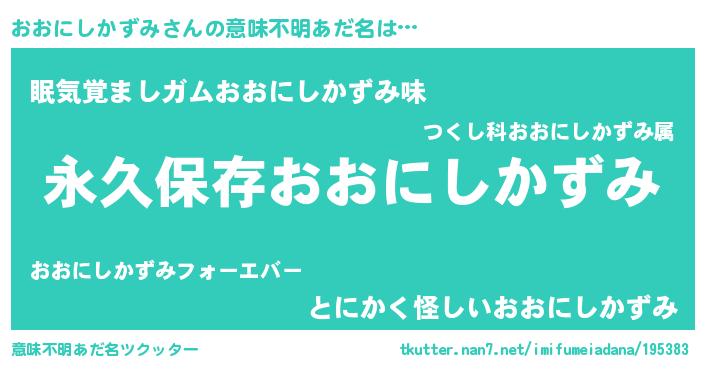 | 男性向けラノベタイトル風あだ名 | 『おおにしかずみという概念が存在しない退屈な世界 』 |