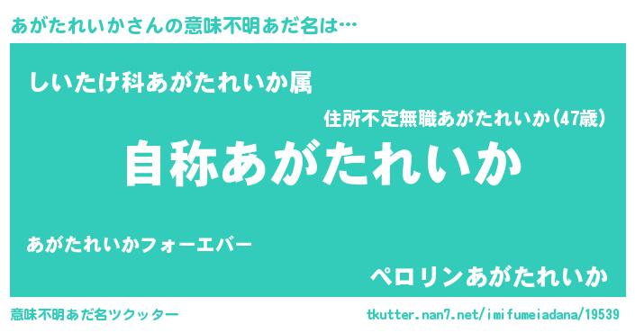| 胡散臭い通販商品みたいなあだ名 | 『芸能人もオススメするアガリクス…その名も「あがたれいか」』 |