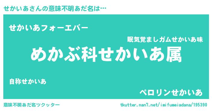 | 恥ずかしいあだ名 | 『せかっちょ』『プリティーせかいあ』 |