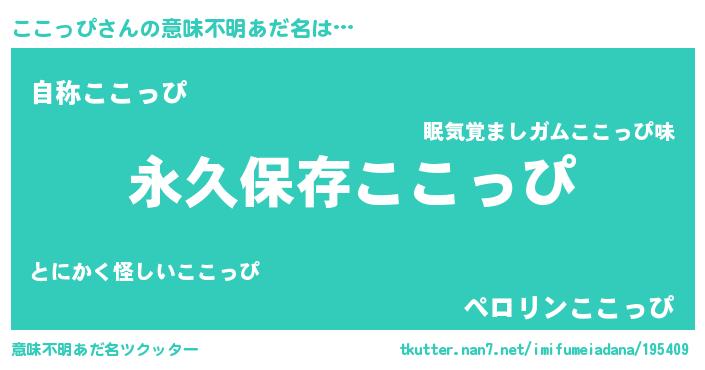 | 男性向けラノベタイトル風あだ名 | 『ここっぴという概念が存在しない退屈な世界 』 |