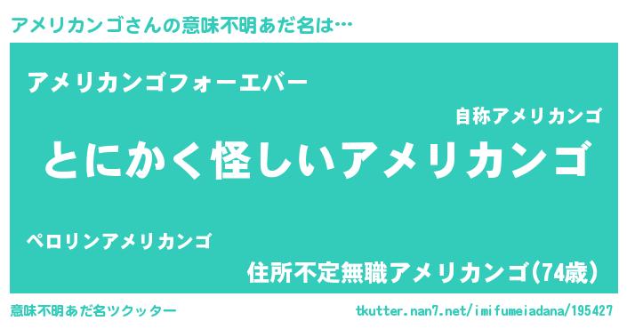 | ポケモン風あだ名 | 『アメゴンZ』『ヒアメリカンゴ』 |