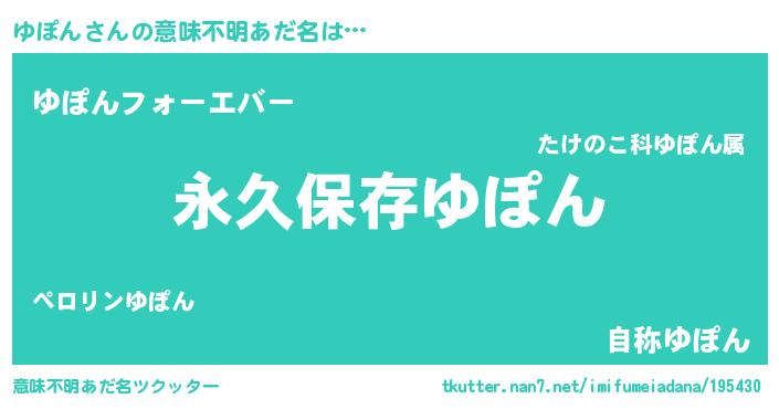 | 男性向けラノベタイトル風あだ名 | 『ゆぽんという概念が存在しない退屈な世界 』 |