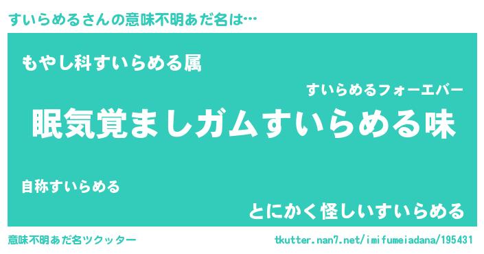 | ヒーロー風カッコイイあだ名 | 『愛の使者すいらめる』『幻影騎士スイ』 |