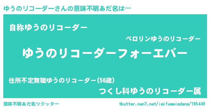 | 肩書あだ名 | 『ゆうのリコーダー総理大臣』 |